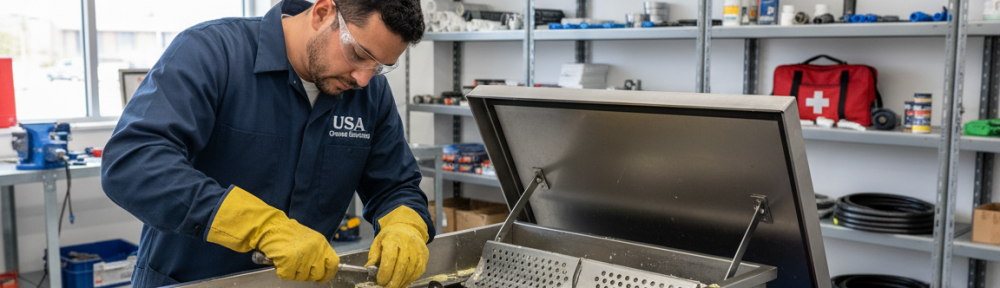Flow and capacity evaluation follows. Comparing current output to the trap’s rated capacity shows if it’s undersized. Professionals often use cameras, scopes, and depth gauges to verify the unit’s internal condition. Companies such as Grease Cleaning Pros advise repair vs. replacement based on age, structural integrity, and performance.